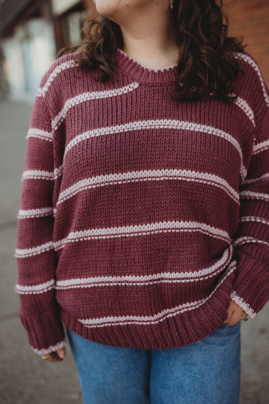 Candy Striped Sweater- Marsala