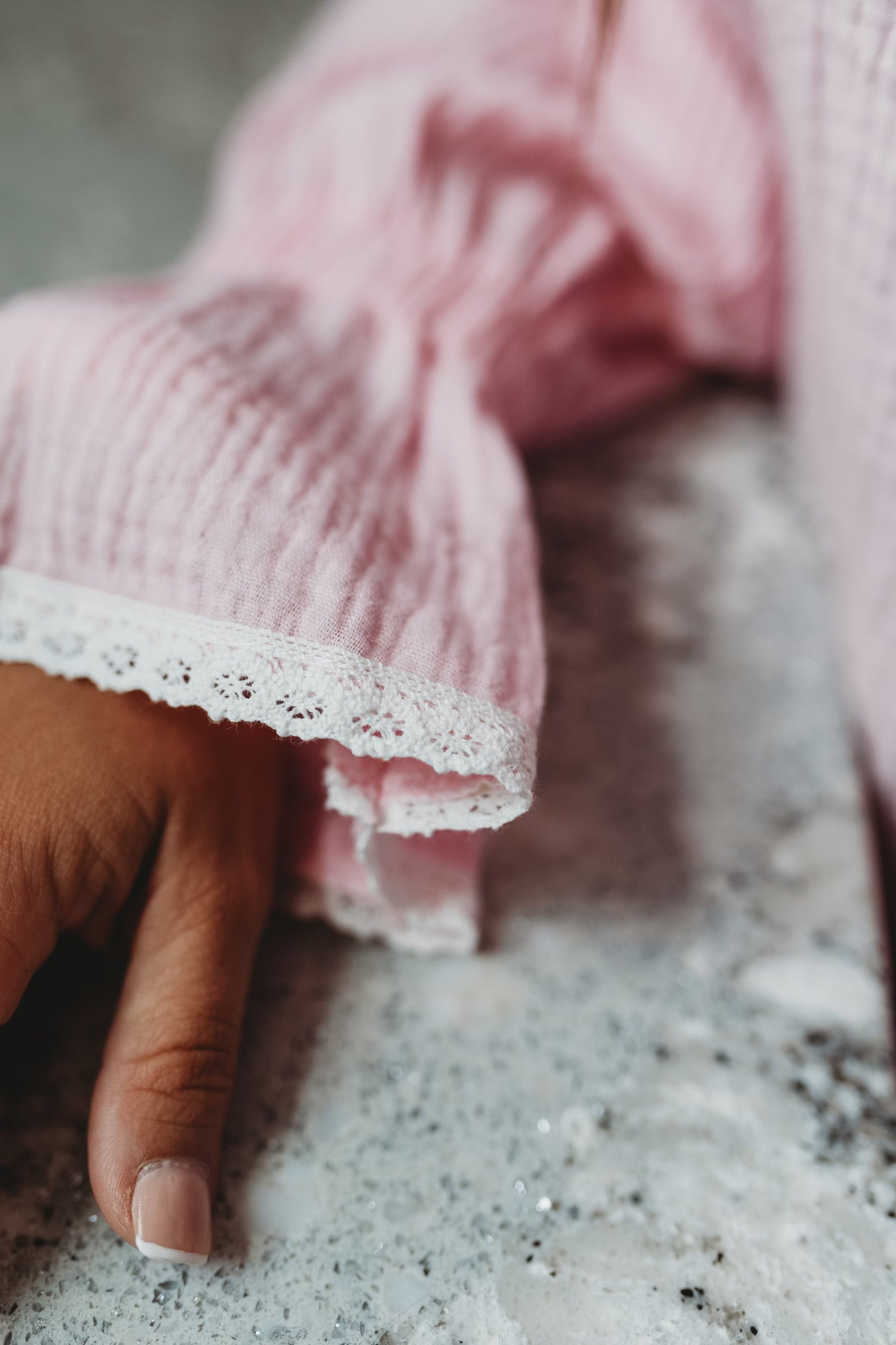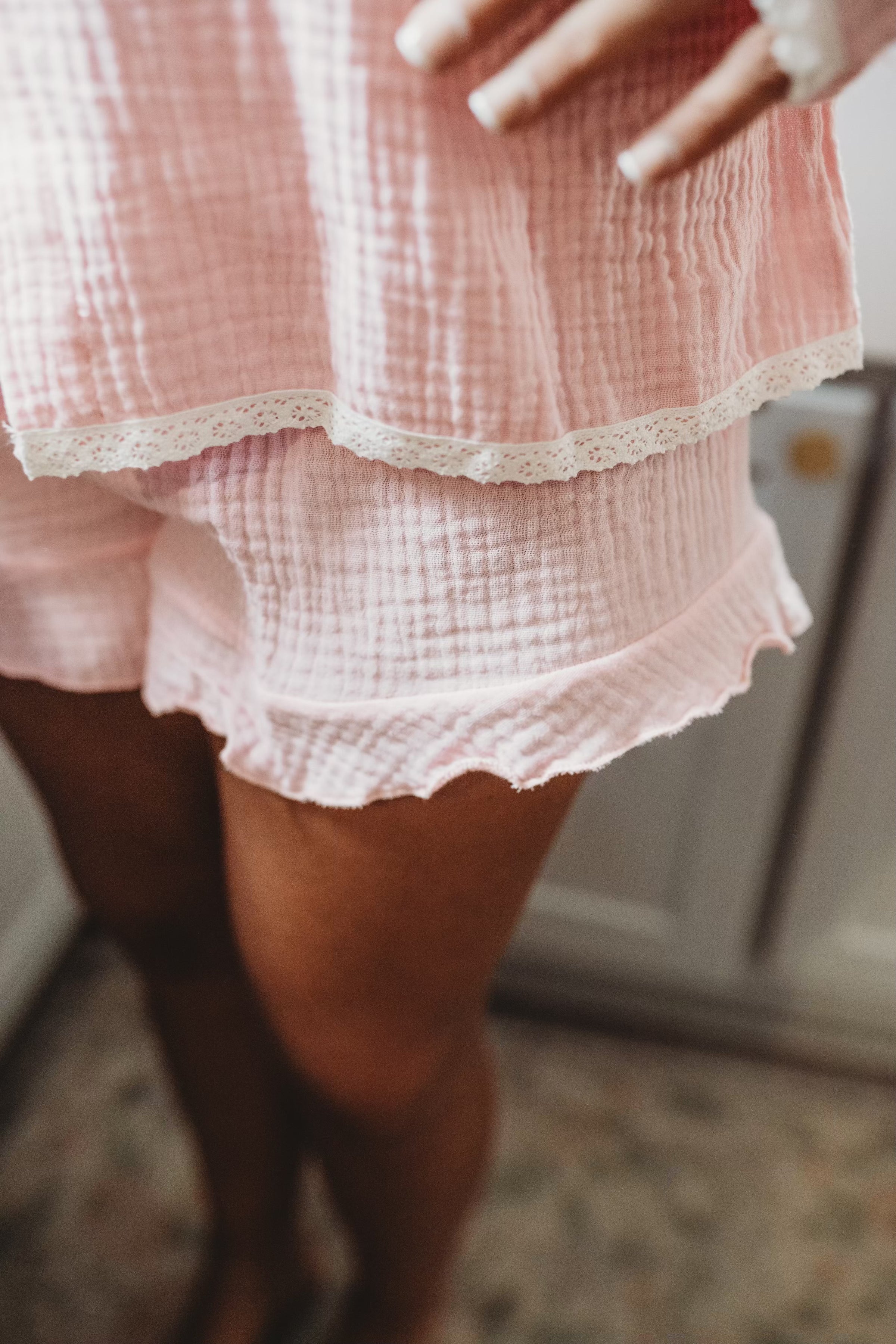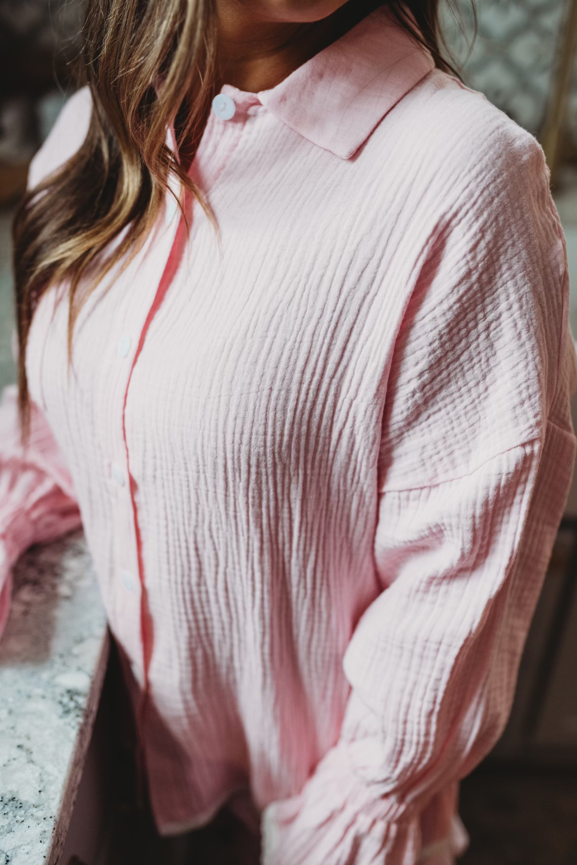 Drift into dreamland in this adorable flounce sleepwear set that's as cozy as it is cute! Featuring soft fabric in a timeless pink, this two-piece set combines sweet style with everyday comfort. Long sleeves and delicate lace accents add a touch of elegance, while convenient button closures make getting ready for bed a breeze. Perfect for lounging at home or snuggling up for the night, this charming set brings a playful twist to your nighttime routine.