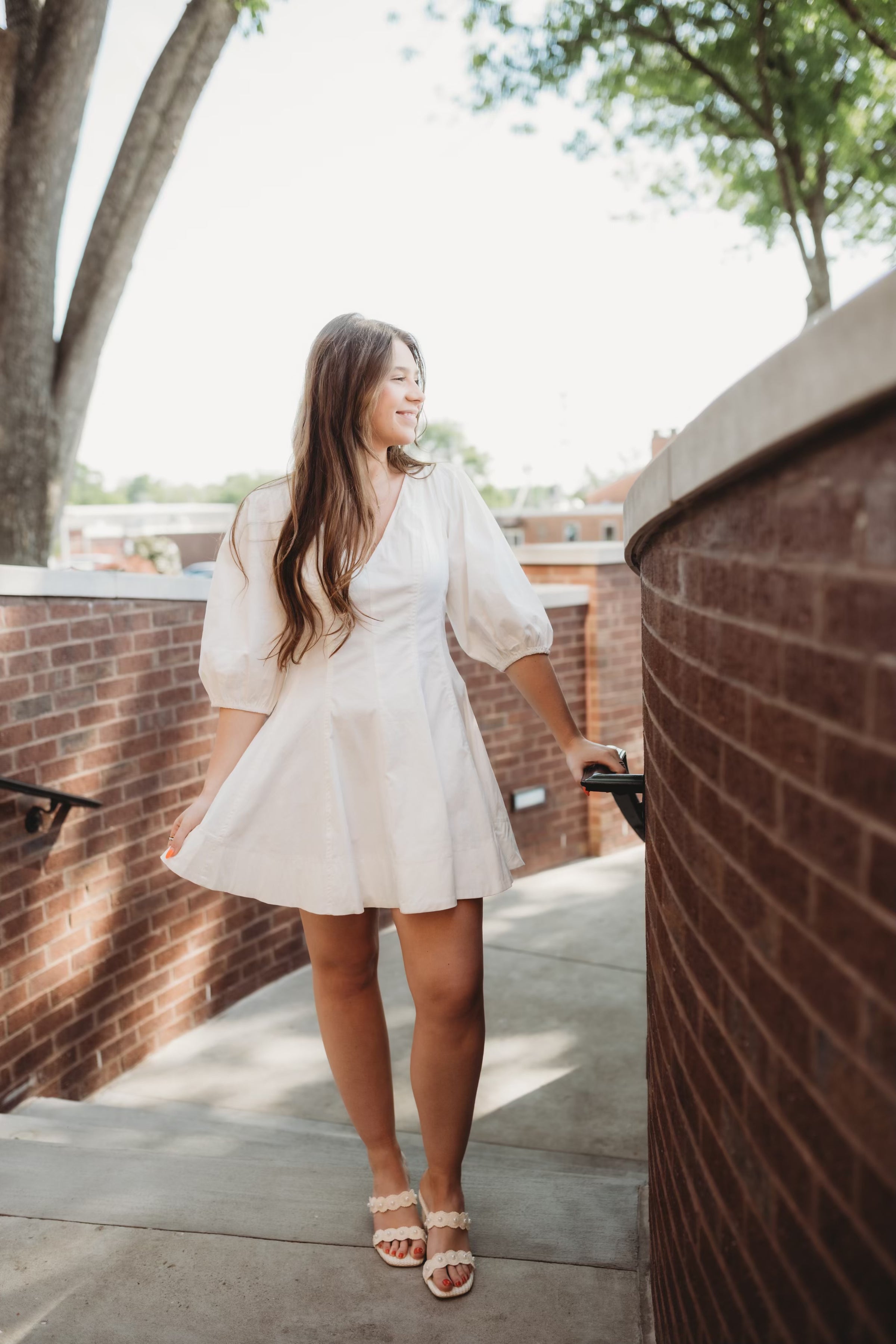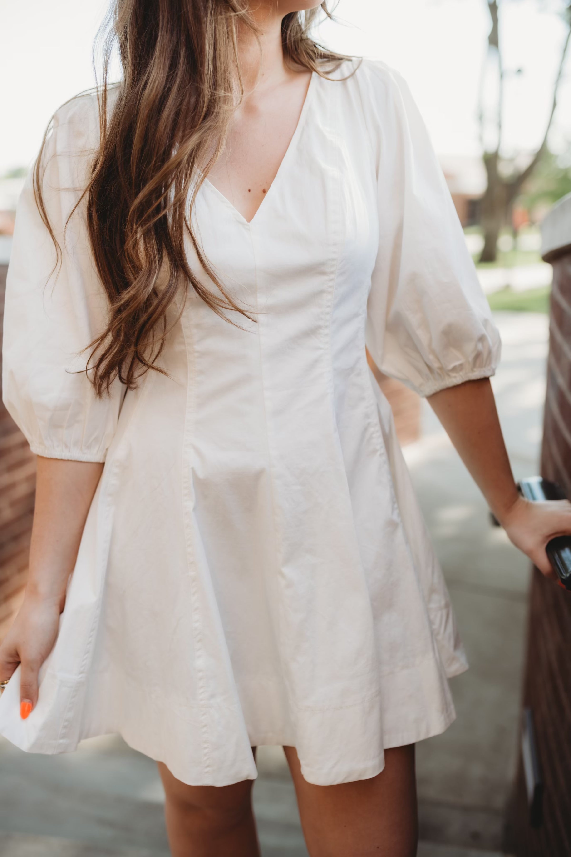 Meet your new favorite dress. The Allie features a perfectly sculpted bodice that hugs your waist, paired with the most adorable voluminous puff sleeves. A flirty V-neckline and gently flared mini skirt complete this sweet, feminine silhouette. Effortlessly chic for any occasion.