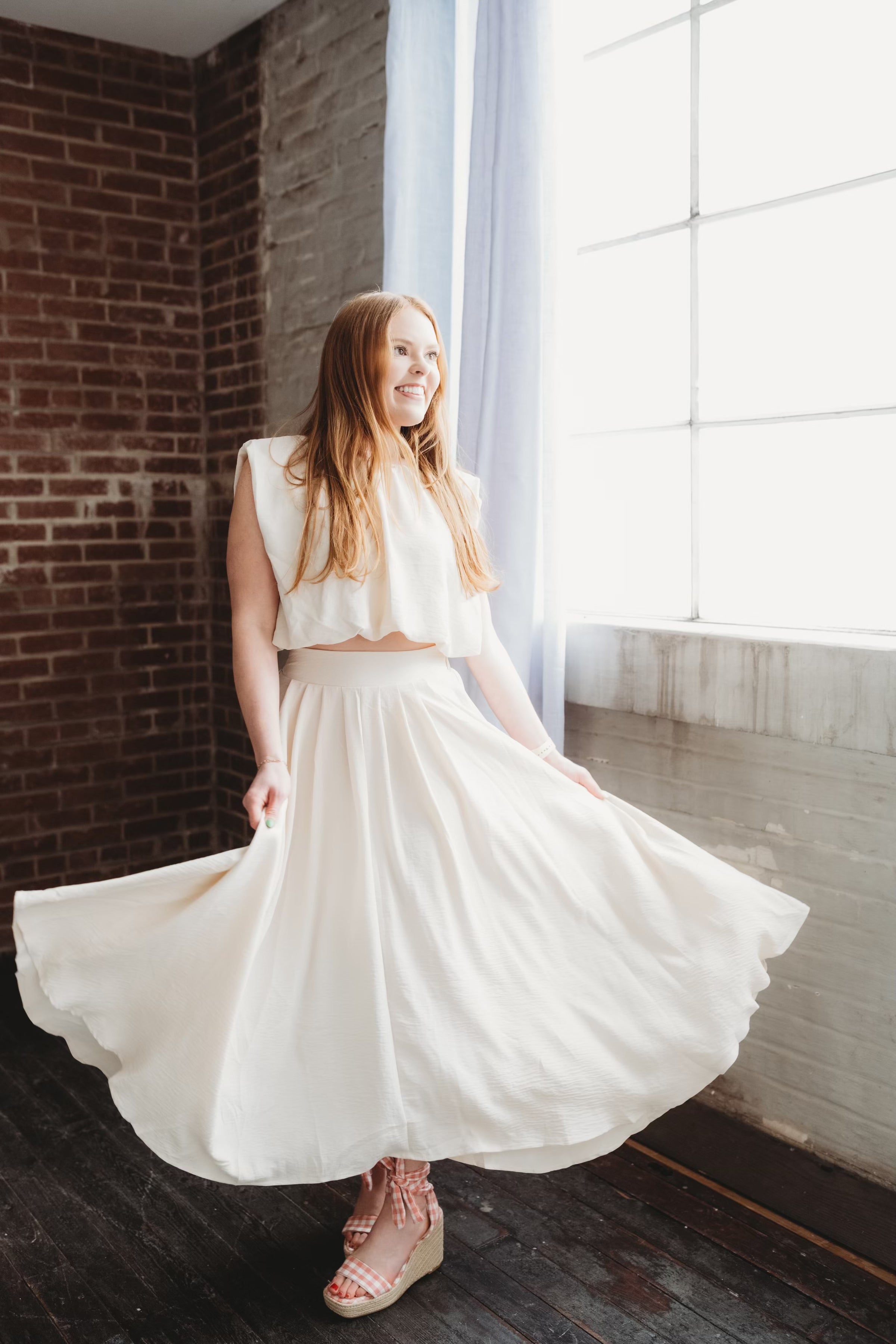 Effortless elegance meets everyday comfort in this box pleated midi skirt. The soft nude tone pairs with everything in your closet, while the elasticized back waist keeps you feeling supported all day long. Crisp pleats create beautiful movement, and the lined circle hem ensures you're covered and confident. Perfect for spring transitions—dress it up or keep it casual. Pair it with the matching top for an effortless ensemble!