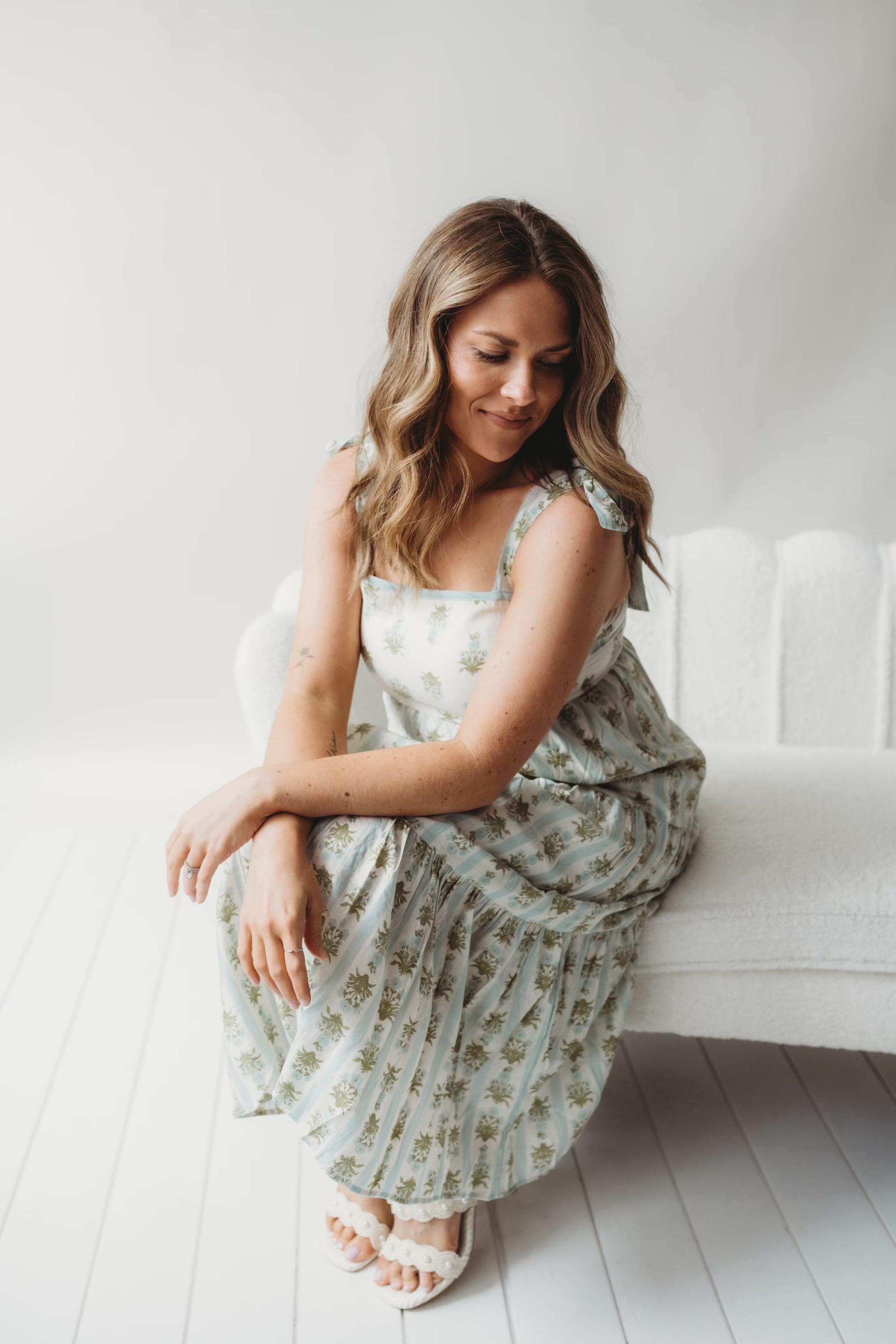 Meet your new spring essential. The Carolyn Contrast Midi Dress pairs a charming floral-and-stripe mix with a flattering empire waist and playful tiered ruffles. The square neckline and tie straps keep things fresh, while back smocking adds just the right amount of texture. Lined and ready for whatever the season brings—because looking good shouldn't feel like work.