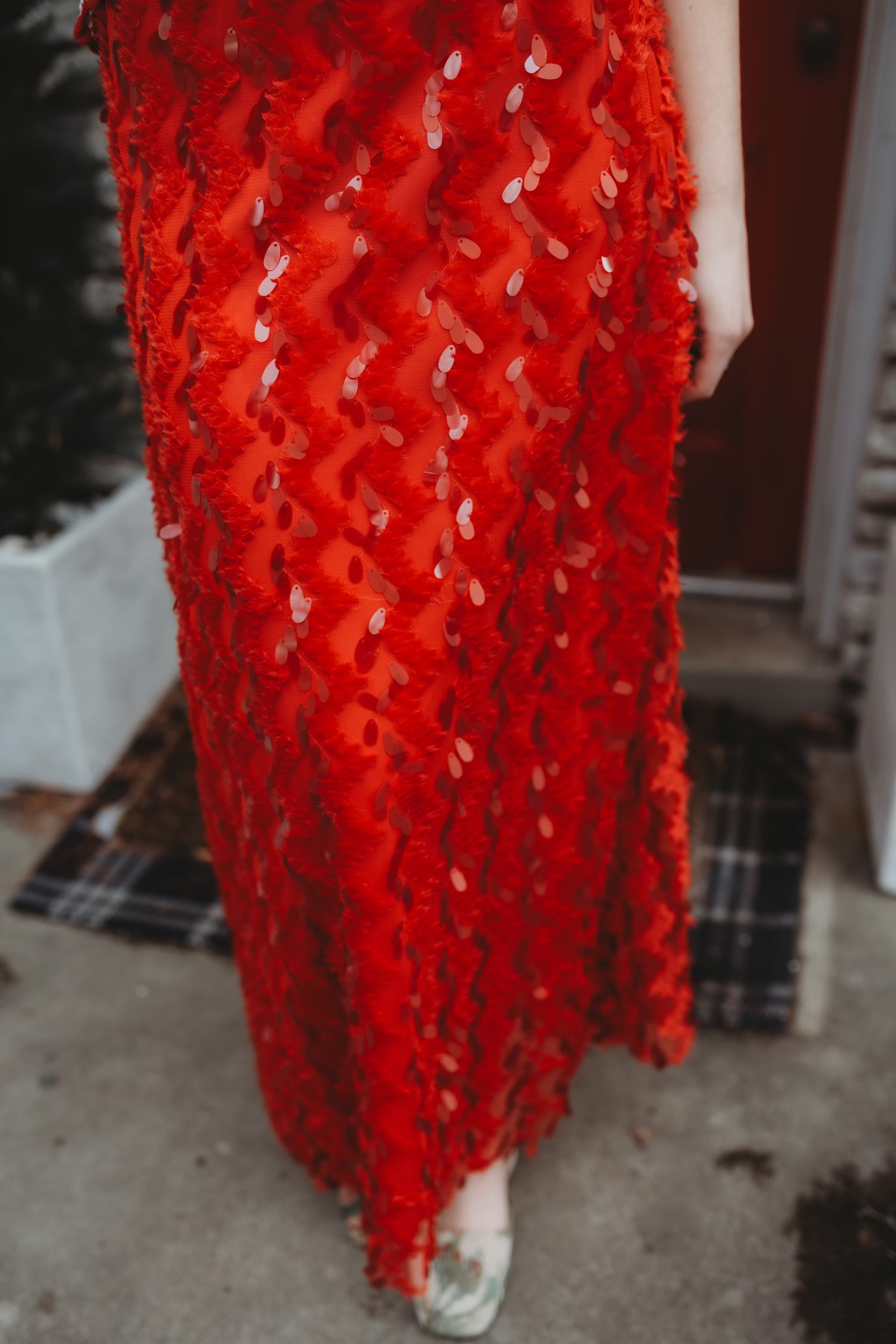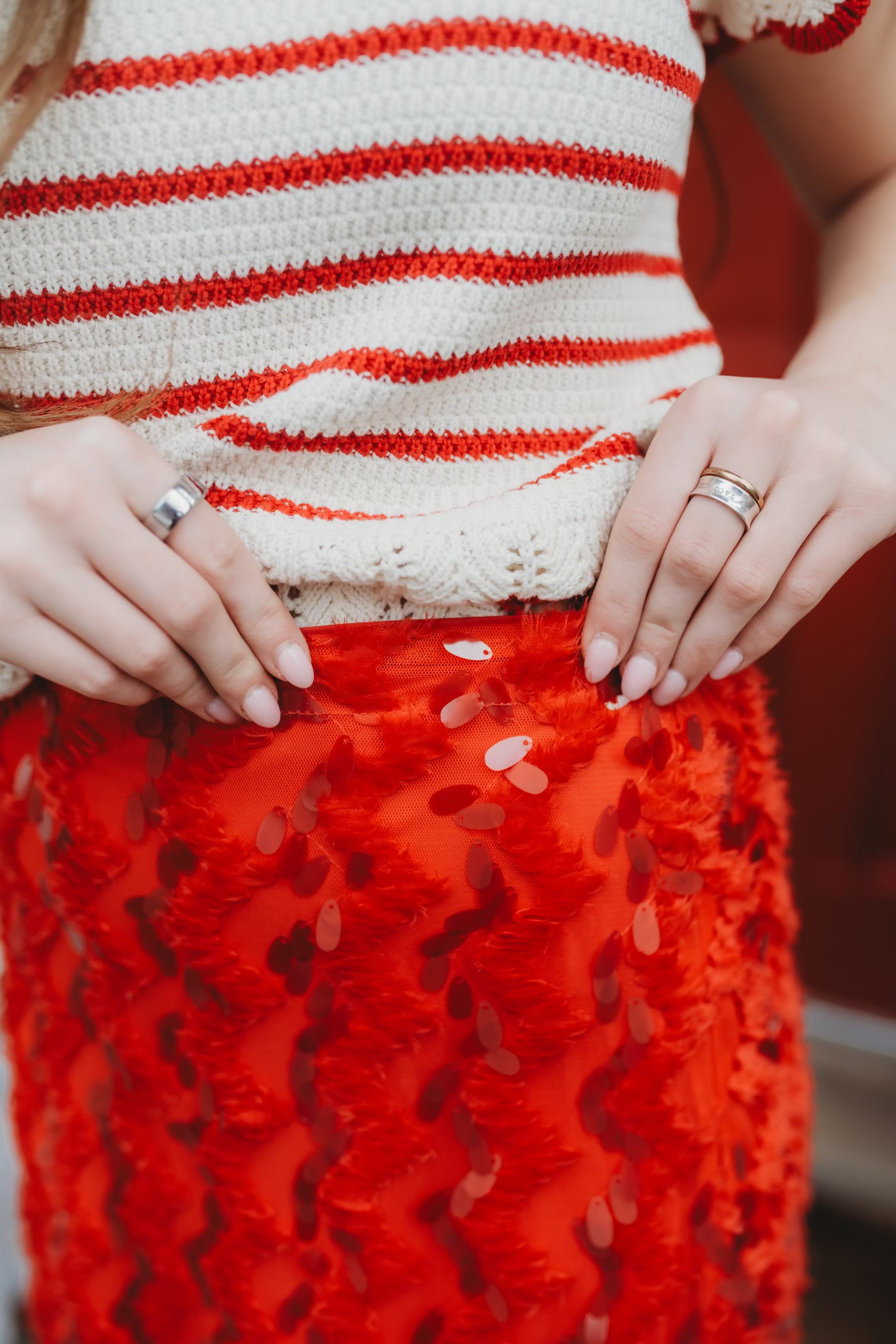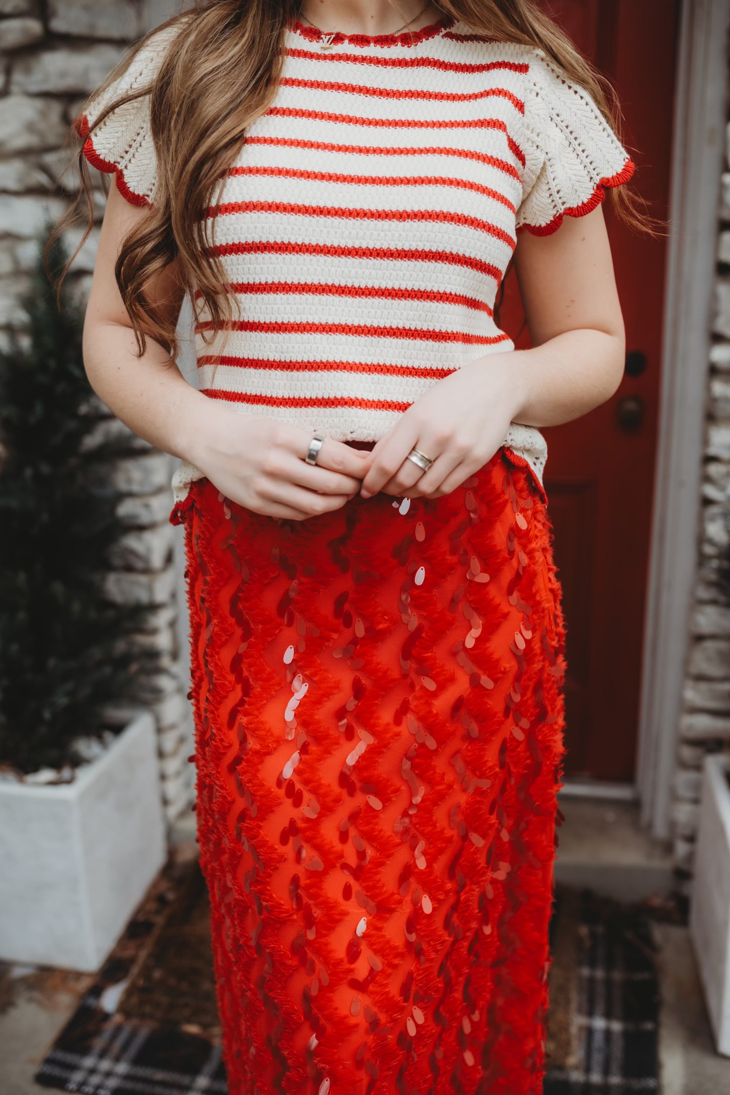 Catch the light with every step in this sequin maxi skirt, where effortless glamour meets modern edge. The full-length silhouette glides with movement, while all-over sequins offer a bold yet wearable shimmer. Style it with a crisp button-down or keep it sleek with a fitted top.
