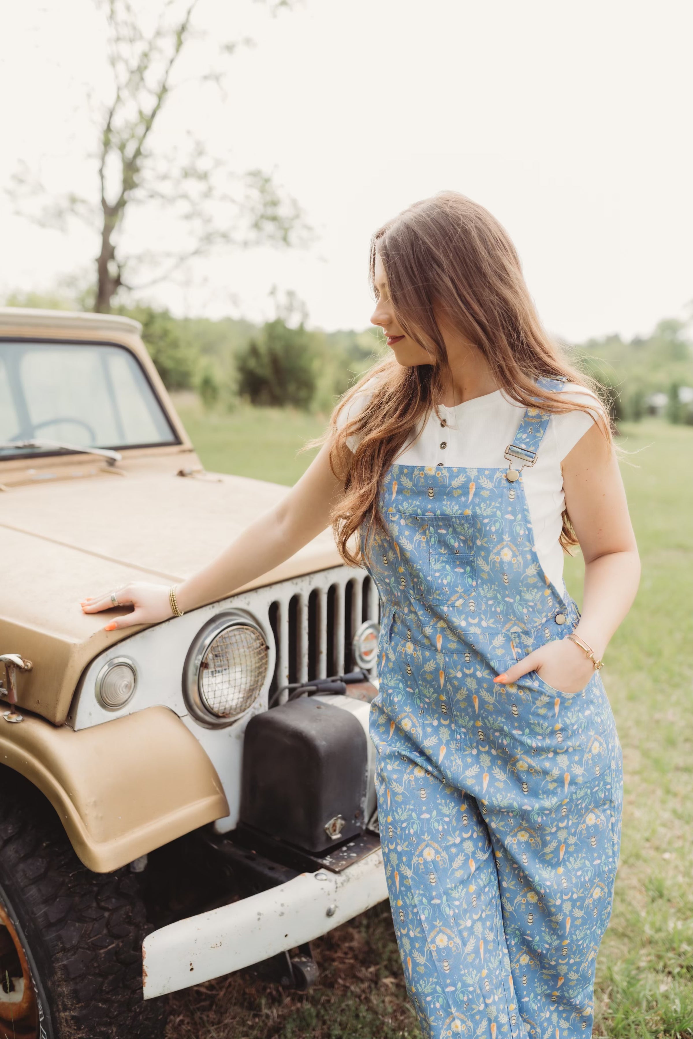 Step into a whimsical garden with Poppie's Print Overalls in our charming Bee's Garden design. These blue overalls feature an adorable bee print that brings playful nature-inspired style to your everyday wardrobe. Perfect for those who love a touch of vintage charm with a modern twist, these overalls offer comfortable, versatile wear for casual outings, creative projects, or making a statement wherever you go.