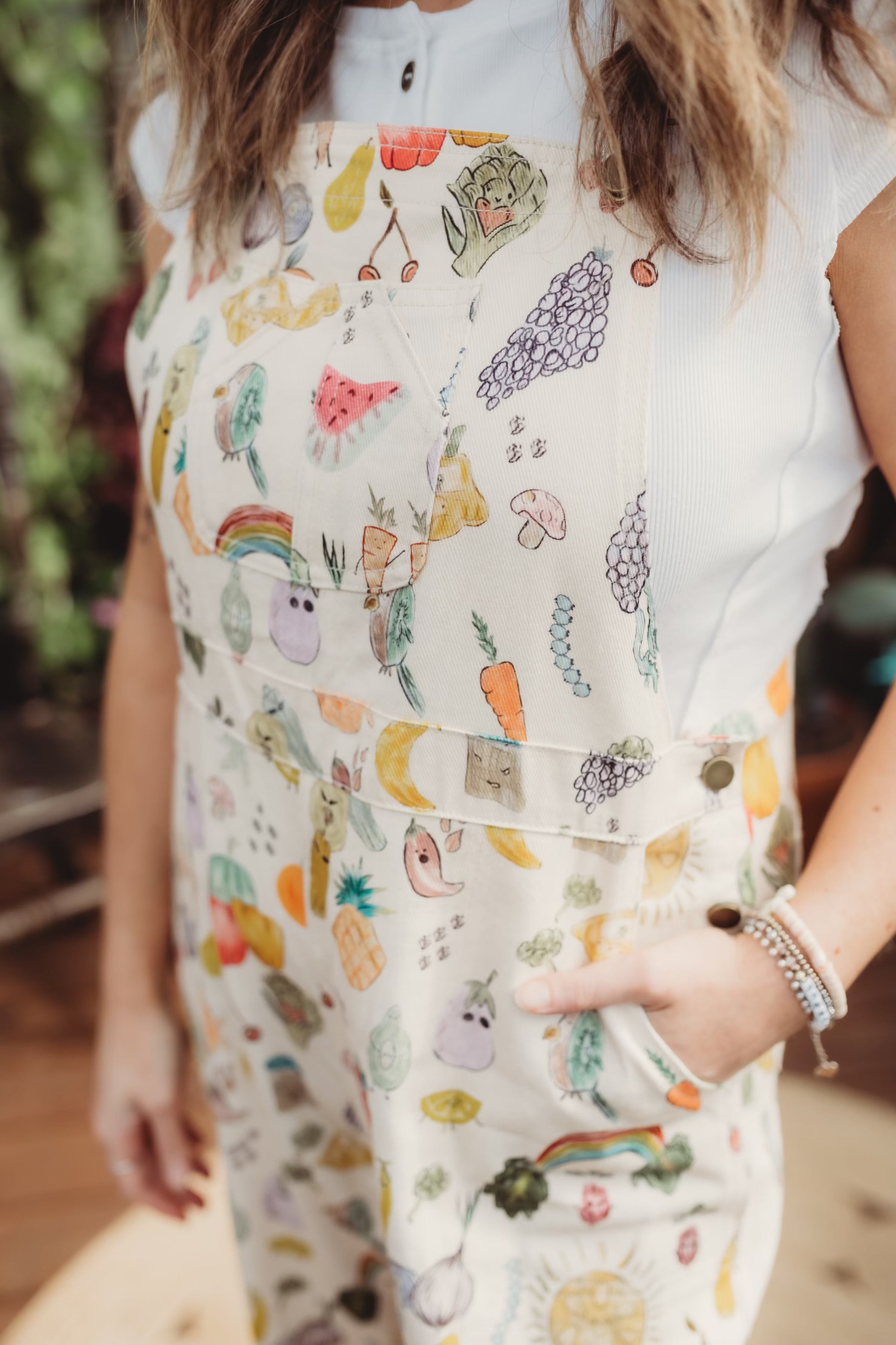 Embrace playful style with Poppie's Print Overalls in our exclusive Cherries & Berries design. These whimsical overalls feature a vibrant fruit print that brings joy to everyday wear. Perfect for creative souls who love bold patterns and comfortable silhouettes, they're ideal for casual outings, creative projects, or making a statement wherever you go. Adjustable straps and practical pockets make them as functional as they are fun.