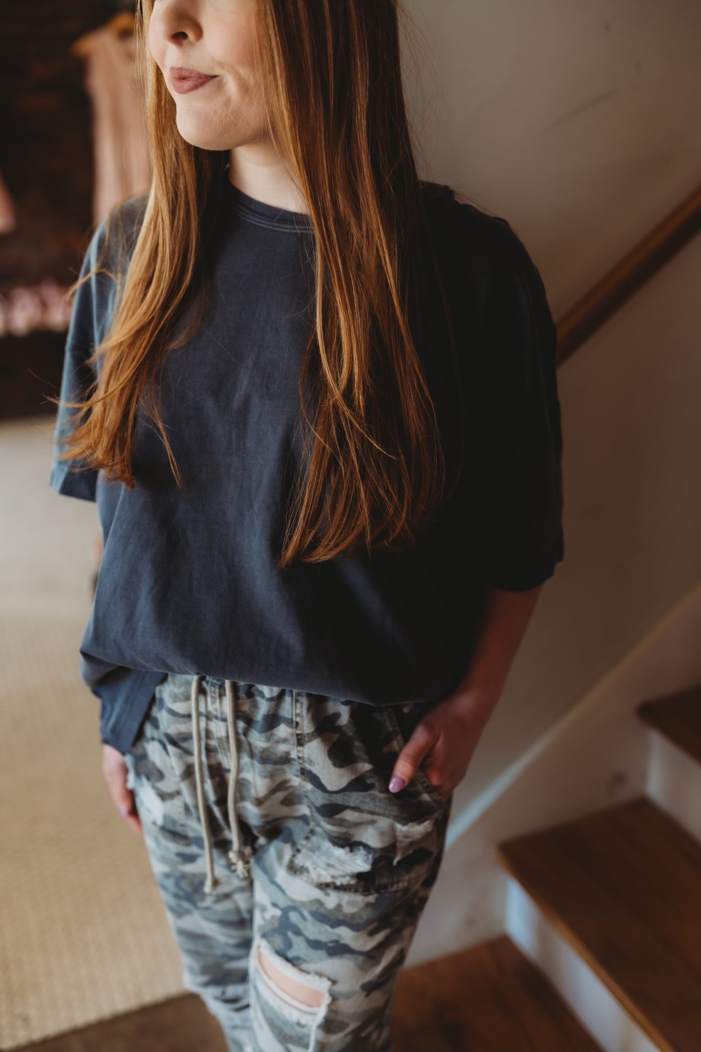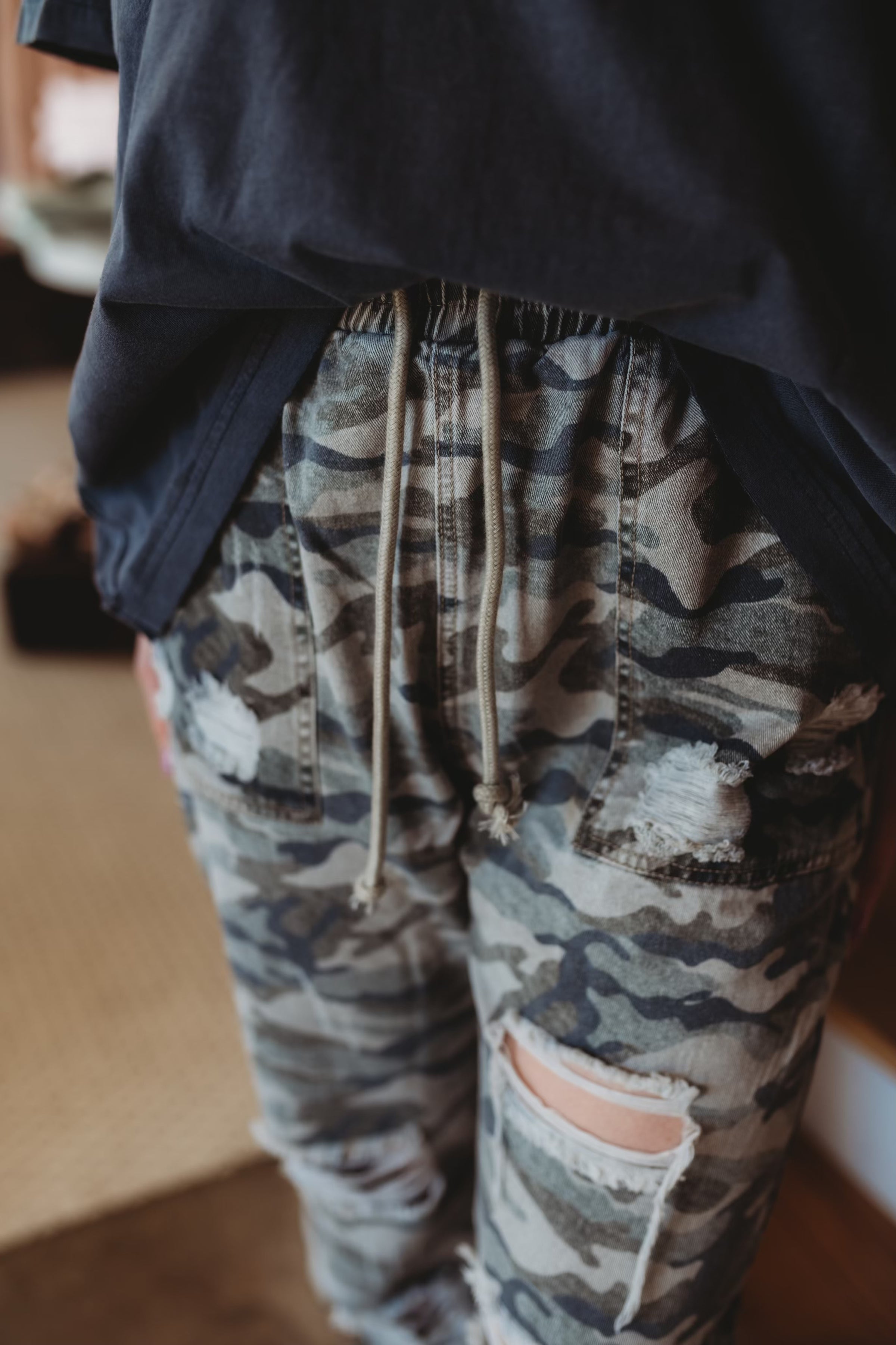 Rock your vibe with these Camo Chic Joggers.The perfect blend of edgy attitude and casual comfort, these joggers feature a distressed denim aesthetic that adds character to any outfit. Whether you're running errands or meeting friends, they're your go-to piece for laid-back confidence this season.