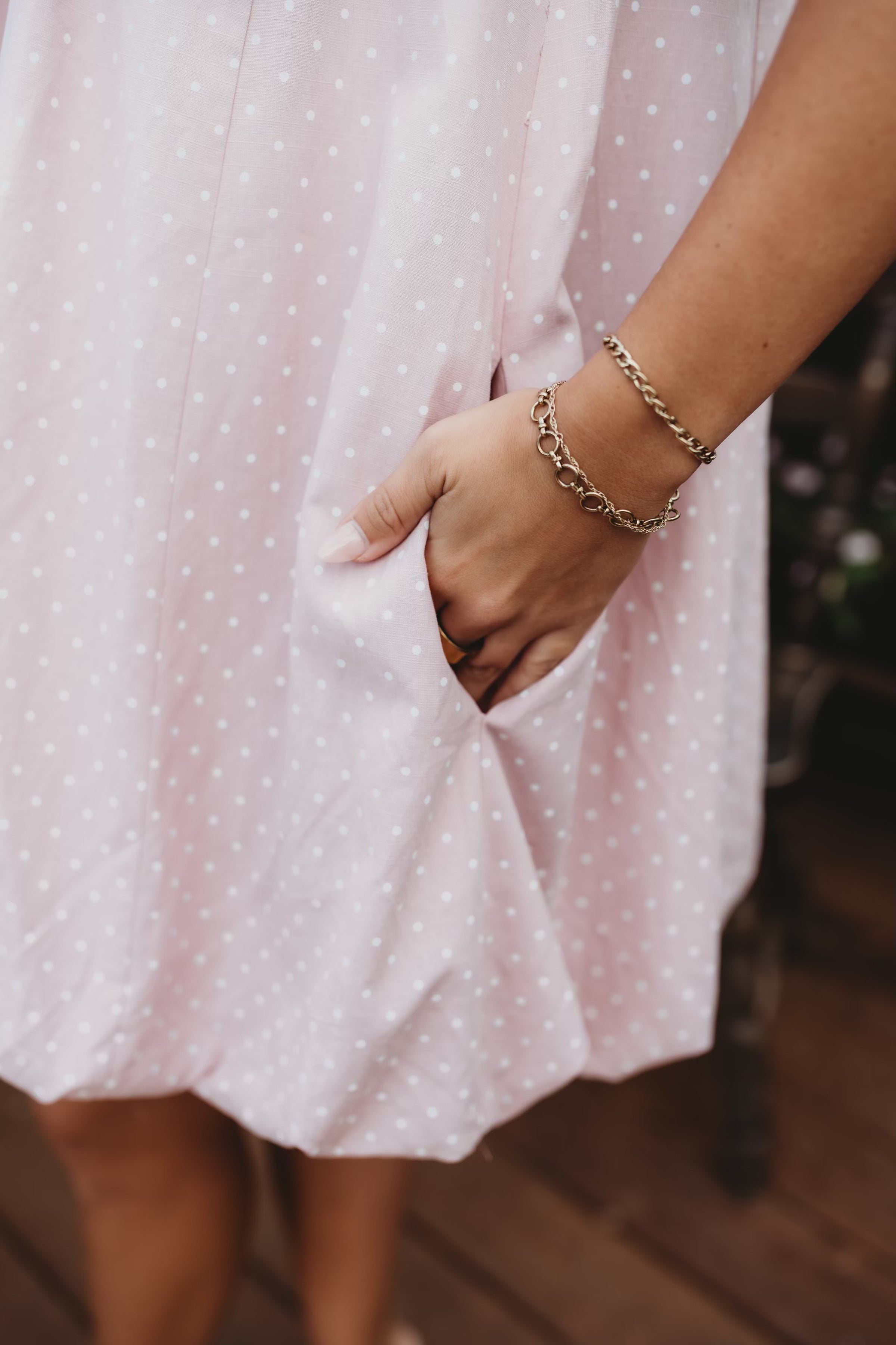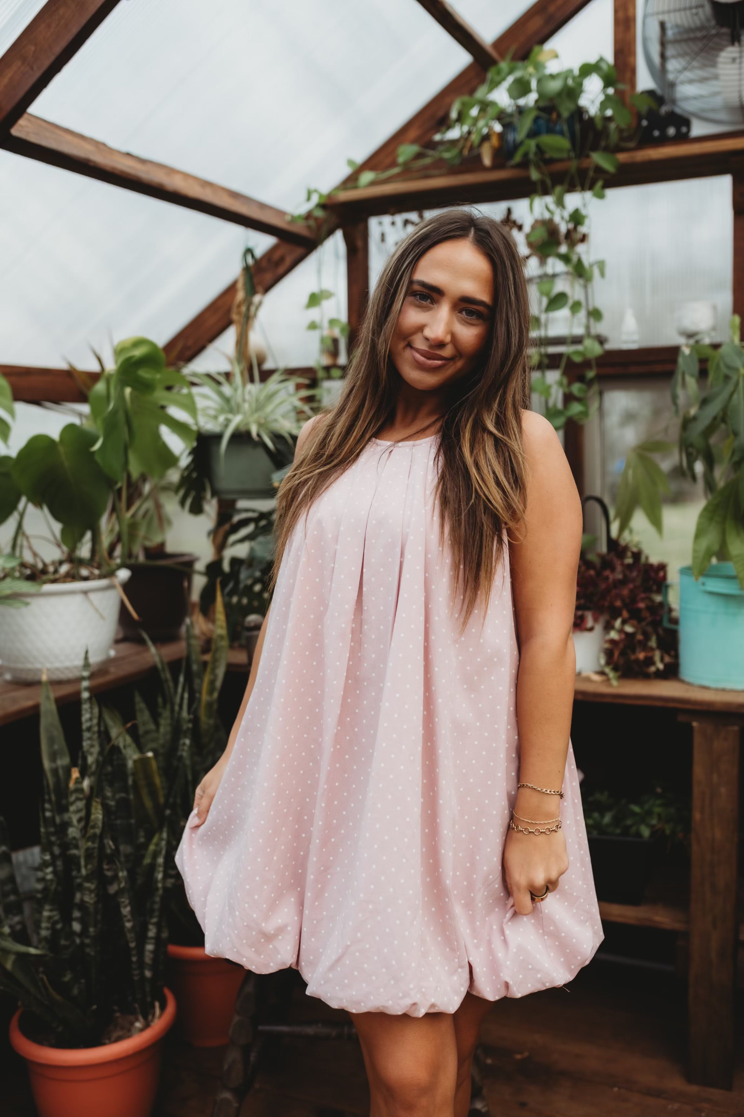 Meet the Dottie Mini Dress—your new go-to for fun, flirty moments! This charming pink dress features an adorable bubble hem that adds playful movement and personality to every step. Whether you're heading out for a casual day or dressing up for something special, Dottie brings that perfect blend of sweet and confident style.