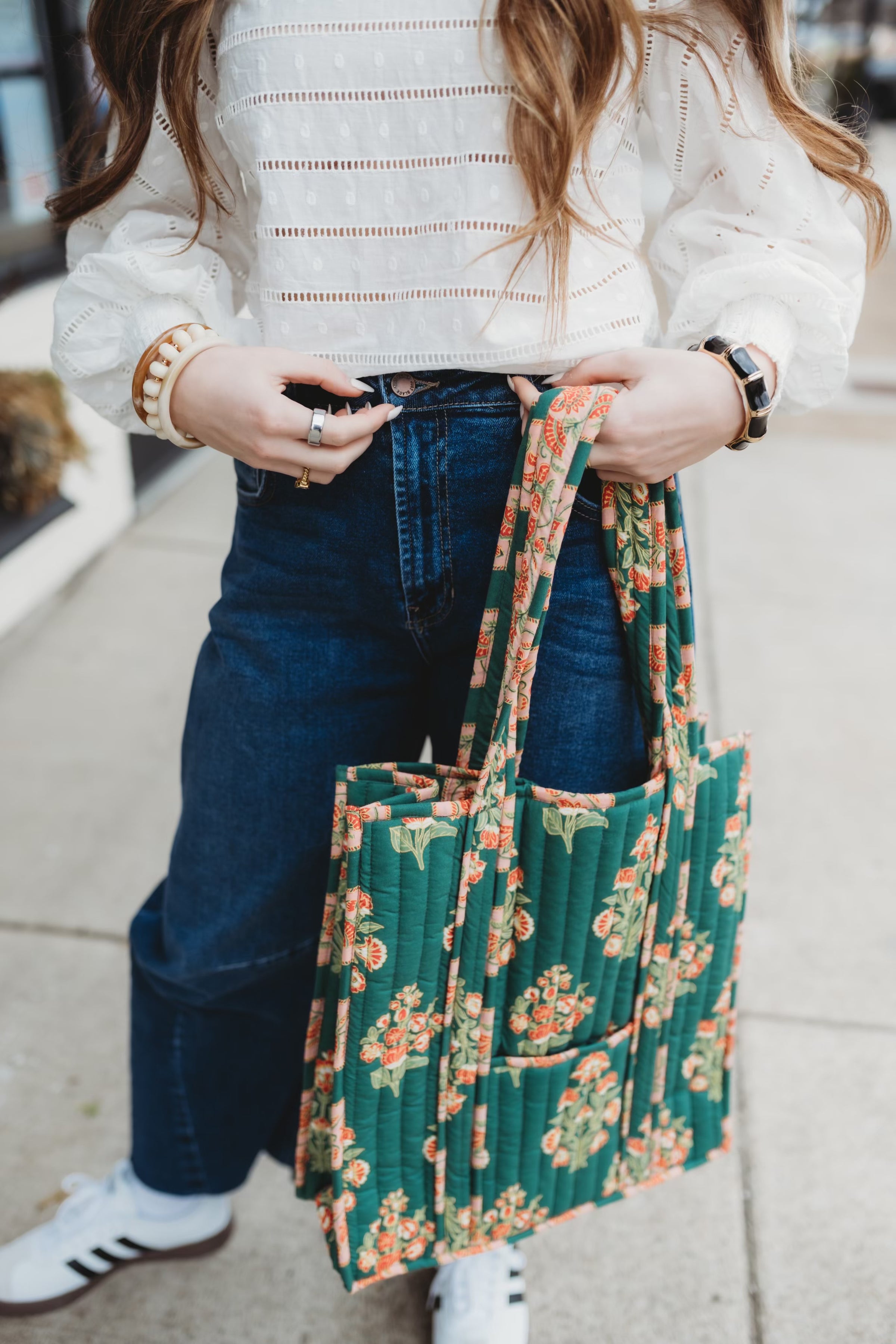 Carry your essentials in style with the Elodie Luxe Quilted Regular Tote. This charming bag features sophisticated quilted detailing that adds texture and visual interest to any outfit. With its spacious interior and sturdy handles, it's the perfect companion for shopping trips, work, or weekend adventures. Whether you're heading to brunch or running errands, this versatile tote keeps your belongings organized while making a chic statement.
