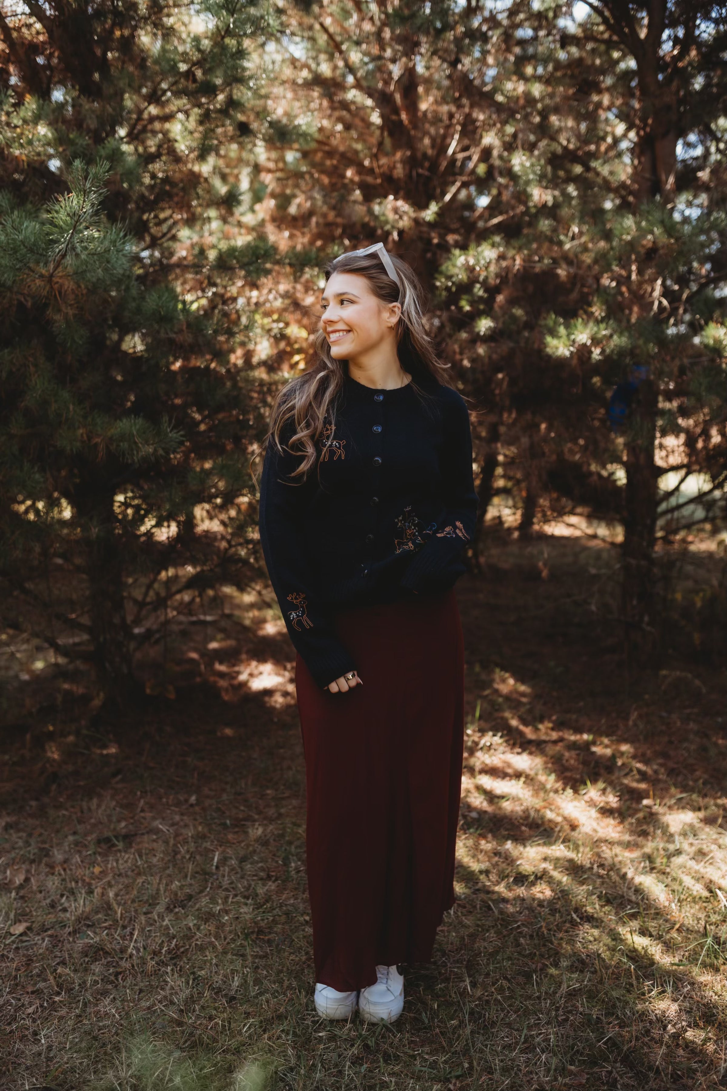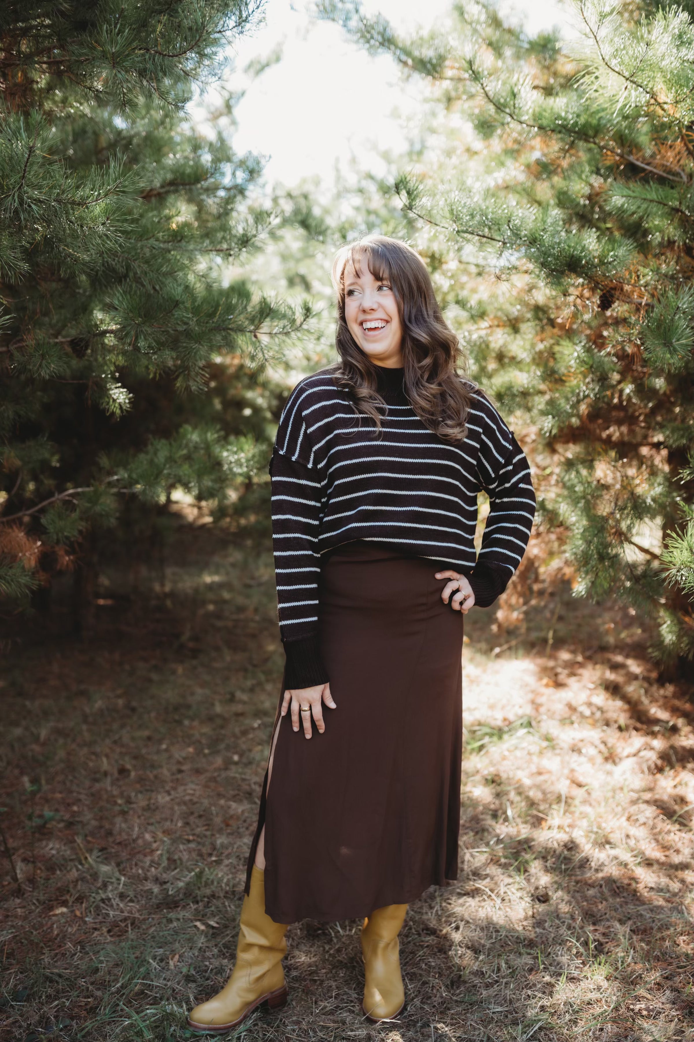 The Rhea Slit Midi Skirt brings effortless elegance to your holiday wardrobe. Available in rich burgundy or warm brown, this flattering midi features a tasteful slit that adds movement and sophistication to your look. Perfect for festive gatherings, it's a versatile piece that works beautifully with heels, boots, or flats. Dress it up for special occasions or style it casually for everyday wear—you'll love how confident you feel in this timeless silhouette.