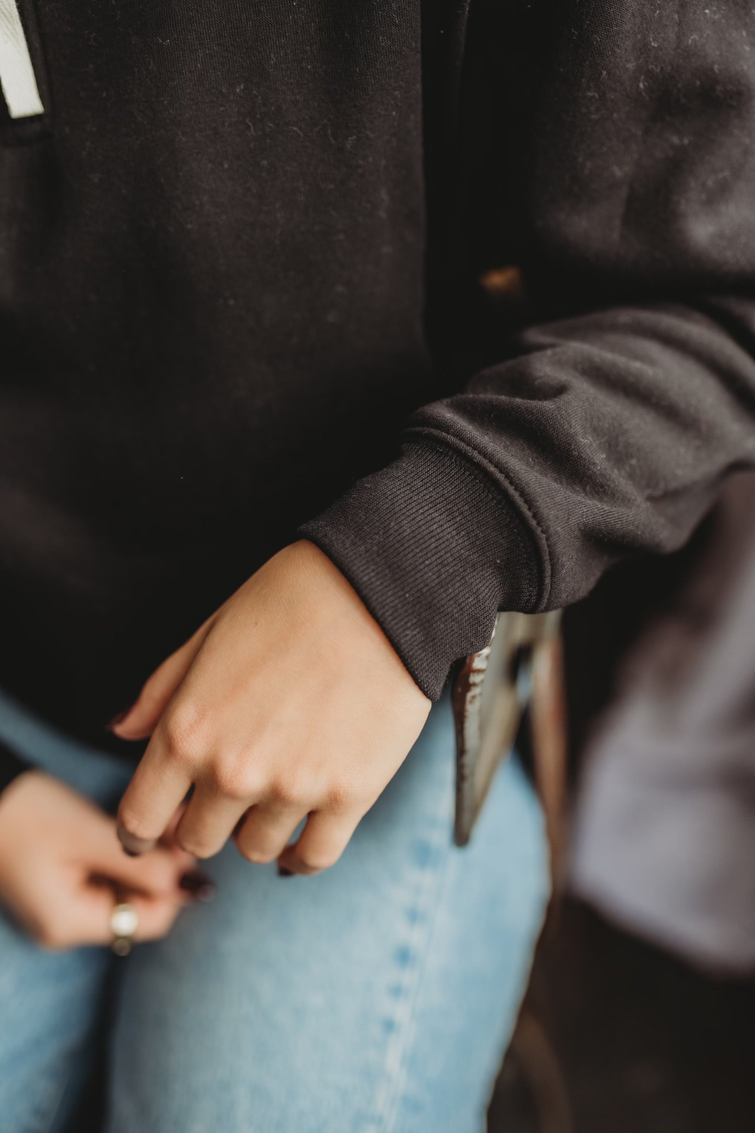 Terry Half Zip Sweatshirt- Black