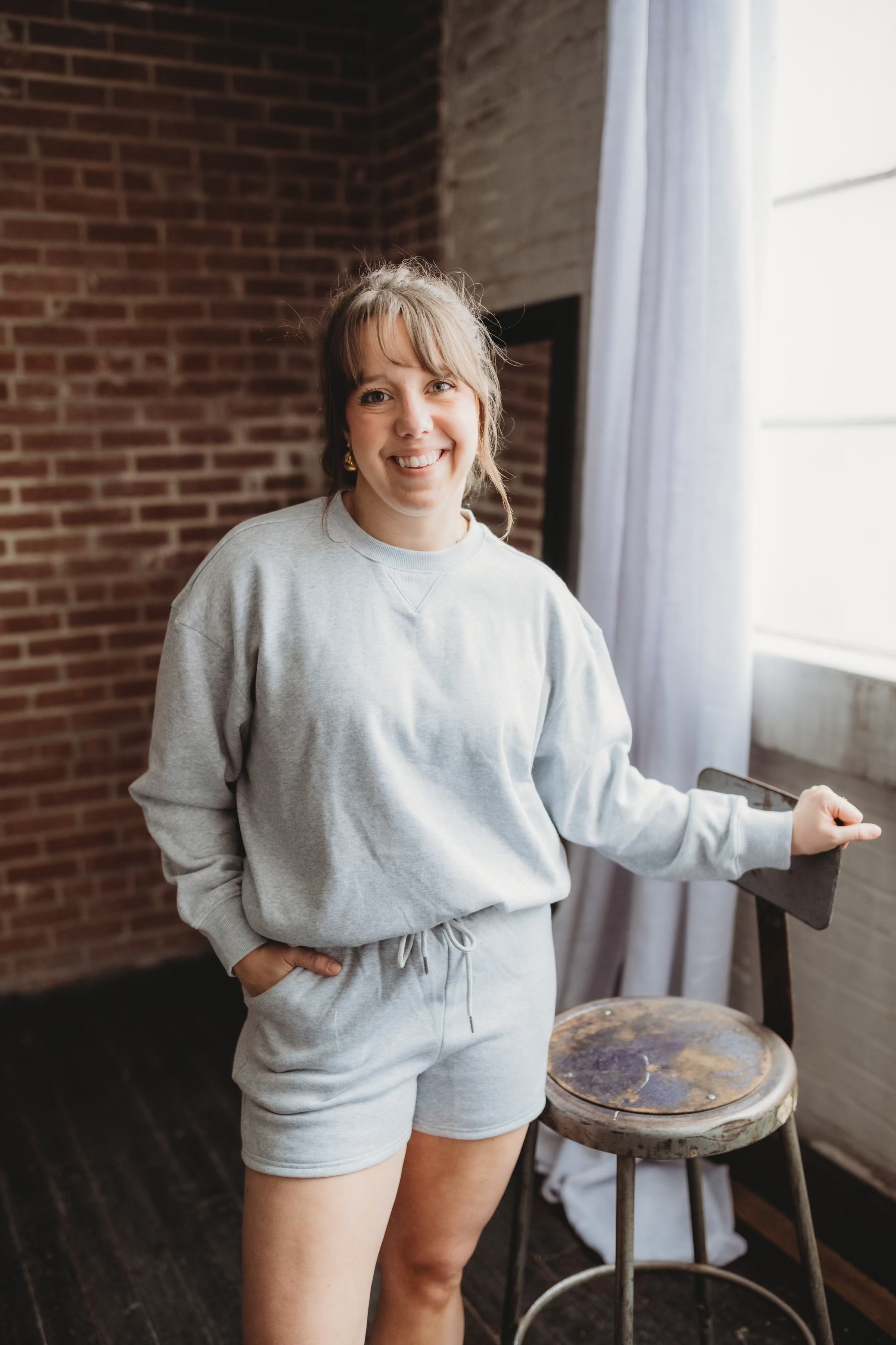 This cozy heather grey loungewear set is made from a high-quality cotton blend that ensures both comfort and long-lasting wear. The oversized sweatshirt offers a relaxed, modern fit with classic ribbed details on the cuffs and hem. Matching shorts complete the set, making it ideal for casual outings, relaxing at home, or light exercise. Its soft heather grey hue adds a versatile, timeless touch that complements any wardrobe. Designed for everyday ease and machine washable, this set effortlessly combines comfort and style for women who value simple, chic comfort.