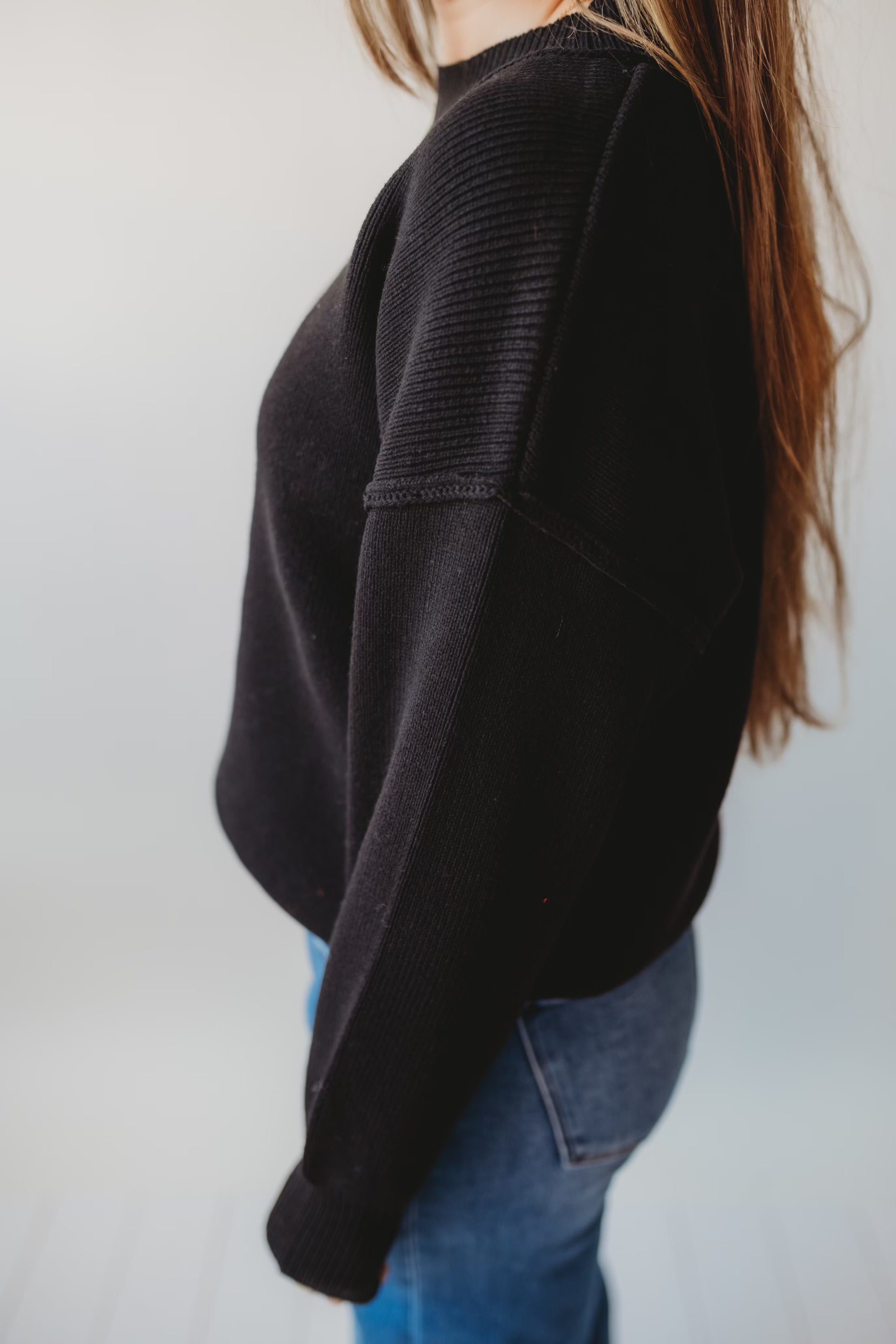 Everyday Drop Shoulder Sweater-Black