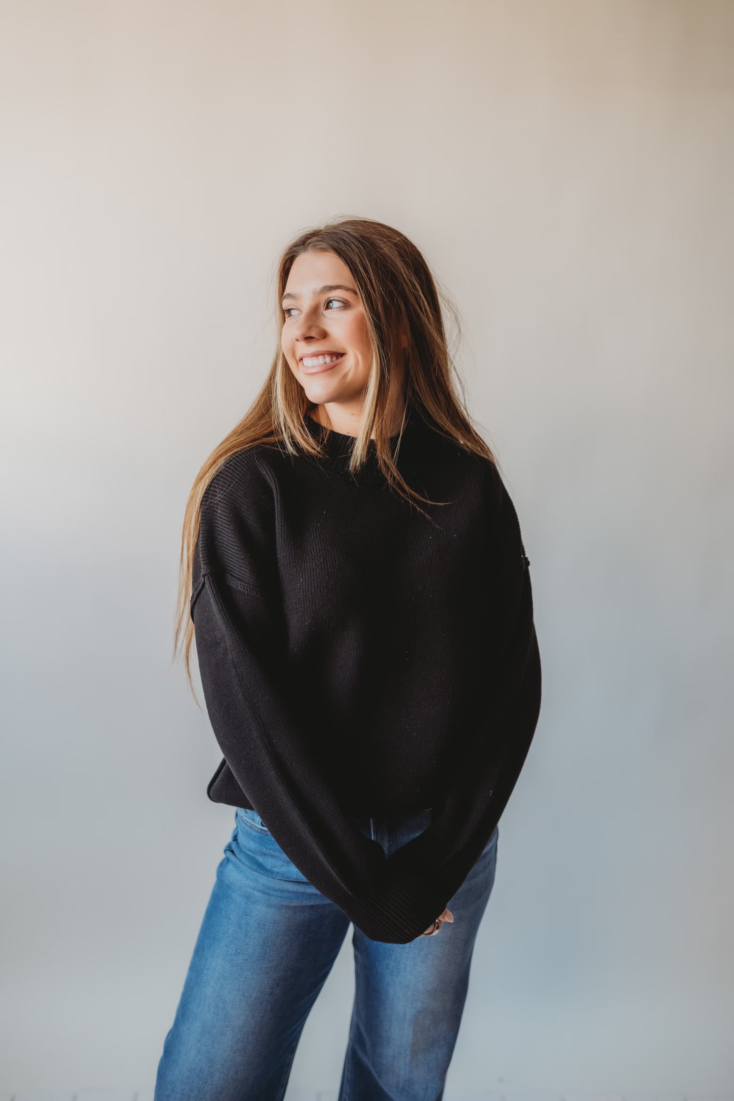 Throw on this black drop shoulder sweater and embrace that effortlessly cool aesthetic. With its relaxed fit and modern wide neckband, it's the perfect piece for looking put-together without the effort. The slouchy shoulders give off laid-back vibes while keeping you toasty through cooler months. Whether you're running errands or hanging with friends, this versatile sweater is your go-to for comfort that doesn't compromise on style.